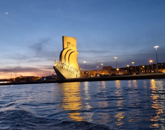 Observe o imponente Padrão dos Descobrimentos na frente ribeirinha de Belém, um monumento que celebra a época dos Descobrimentos Portugueses. Com a forma da proa de um navio, apresenta o Infante D. Henrique e outras figuras históricas voltadas para o Tejo — simbolizando as viagens que ligaram Portugal ao mundo.